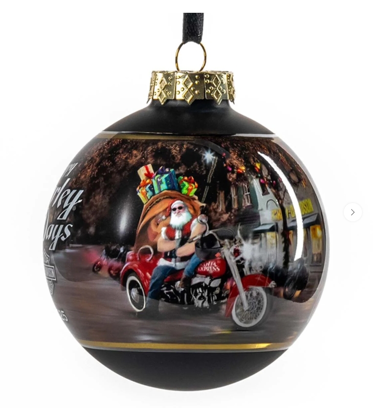 2025 Biker Santa Ball Ornament – HDX-99355
