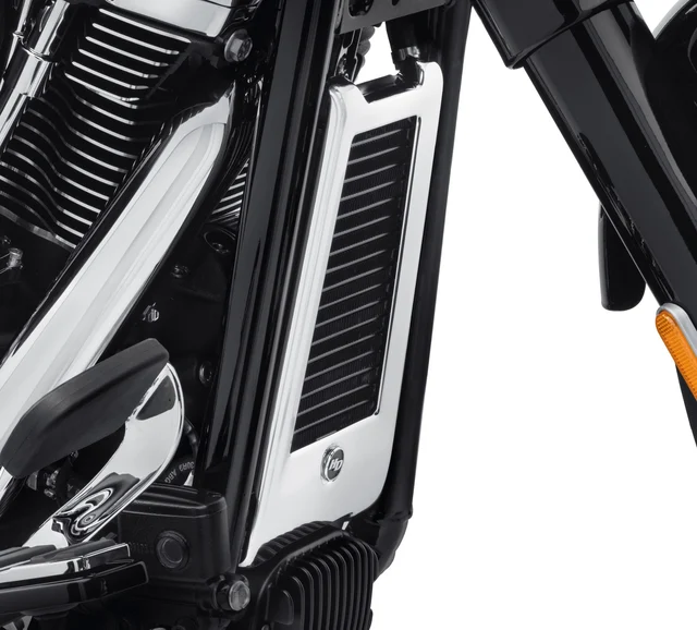 Bedek jouw oliekoeler in stijl. De afdekking vult het gebied tussen de onderbuizen van het frame en geeft een volledig op maat gemaakte look, zonder de luchtstroom over het oppervlak van de koeler te verstoren. Deze oliekoelerafdekking vervangt de plastic rand en omdat deze de contouren van de koelerbehuizing volgt, hindert deze de installatie van de valbeugel niet.