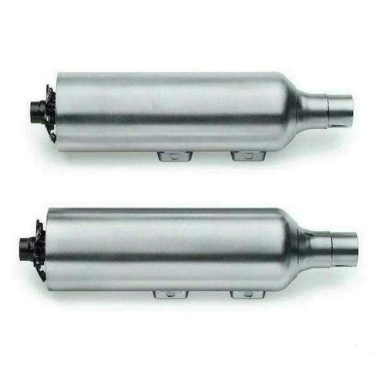 These 4.5” street compliant high-flow mufflers have been specifically tuned to deliver an aggressive exhaust note and improved performance. The straight-through perforated baffle reduces airflow restriction, and produces a rich exhaust note throughout the entire RPM range. You get a great performance, a powerful base rumble and a throaty tone while on the throttle, while maintaining a mellow note while cruising. Available in your choice of brushed satin chrome or heat resistant Satin Black ceramic finish. Matching or contrasting end caps (sold separately) complete the custom look.